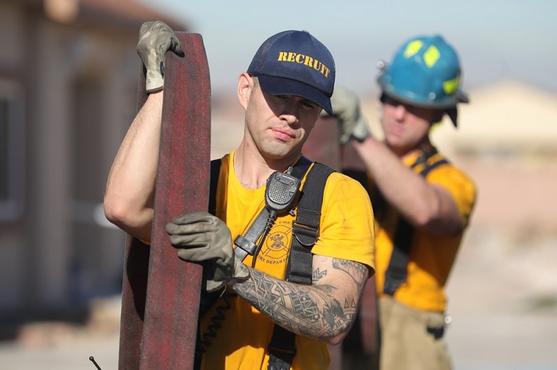 The men and women who strive to become firefighters with the Clark County Fire Department commit to hard work and dedication as the elite members of a training program intended to sculpt them into the best firefighters. The Clark County Fire Department is committed to excellence and the men and women selected for our program embody that commitment. Take a look at these images to see a glimpse into the lives of team members who undergo weeks of training to prepare them to protect the families who call Clark County home and the tourists who visit.